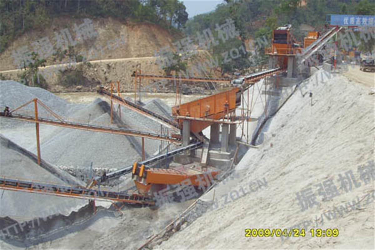 緬甸砂石料系統(tǒng)(上為破碎機(jī),中為振動(dòng)篩,下為洗砂機(jī))